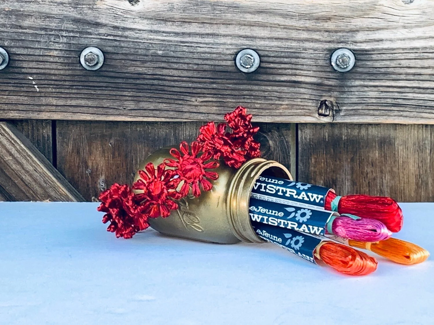 Categories: All lovely flower bouquets lovely flower pins lovely for your head lovely for your fingers lovely for you to hang lovely for your neck Ruby Buffalo Flower Kits lovely for your special day All | lovely flower bouquets | lovely flower pins | lovely for your head | lovely for your fingers | lovely for you to hang | lovely for your neck | Ruby Buffalo Flower Kits | lovely for your special day | Dorothea's vintage bouquet of woven Swistraw flowers in white, rose gold, silver and gold by Ruby Buffalo. $100.00 Vera's single flower pin woven in pink and yellow vintage Swistraw. $10.00 Vera's single flower pin woven in orange, white center and pink vintage Swistraw. $10.00 Vera's single flower pin woven in pale orange, bright orange and touch of pink vintage Swistraw. $10.00 Dorothy flower wedding crown. Floral wedding crown. Flower headband woven with silver and two shades of gold vintage Swistraw flowers. $25.00 Dorothy 12 inch vintage Swistraw flower wedding wreath wrapped in linen. Wreath with vintage Swistraw flowers in gold, silver and white. $75.00 Mavis long flower necklace woven in emerald green and classic navy vintage Swistraw by Ruby Buffalo. $18.00 Wanda long flower necklace woven in perfect blue with vintage Swistraw by Ruby Buffalo. $18.00 Rose long flower necklace woven in perfect pink vintage Swistraw by Ruby Buffalo. $18.00 Vera's single flower pin woven in orange and bright yellow vintage Swistraw. $10.00 Vera's single flower pin woven in bright green and white vintage Swistraw. $10.00 Vera's single flower pin woven in vintage purple and white vintage Swistraw. $10.00 Vera's single flower pin woven in white, yellow and green vintage Swistraw. $10.00 Vera's single flower pin woven in sunny yellow, light purple and perfect orange vintage Swistraw. $10.00 Dorothy 12 inch vintage flower wreath wrapped in linen. Wreath with vintage Swistraw flowers woven in gold, silver and white flowers. $75.00 Vera's single flower pin woven in yellow, hint of bright green and navy blue vintage Swistraw. $10.00 Ruby Buffalo vintage Swistraw DIY flower making kit with Hazels Flower loom and 4 skeins of vintage Swistraw. Unique vintage craft kit. $30.00 Rita flower crown with woven yellow, green and ivory flowers in vintage Swistraw. Headband with vintage Swistraw flowers. Custom headband. $25.00 Madge woven flower headband in matte shades of blue, green and sand vintage swistraw by Ruby Buffalo. $25.00 Vera's single flower pin woven in perfect sky blue and bright green vintage Swistraw. $10.00 Cornelia long flower necklace woven in perfect red vintage Swistraw by Ruby Buffalo. $18.00 Sally long flower necklace woven in bright sunshine yellow and perfect white with vintage Swistraw by Ruby Buffalo. $15.00 Rita 12 vintage flower wreath wrapped in linen. Wreath with vintage Swistraw woven flowers in shades of green in vintage Swistraw. $75.00 Dorothea's vintage bouquet of woven Swistraw flowers in white, rose gold, silver and gold by Ruby Buffalo. $100.00 Cornelia 12 inch vintage flower wreath wrapped in linen. Wreath with vintage Swistraw flowers in shades of pink flowers. $75.00 Dorothy 12 inch vintage flower wreath wrapped in linen. Wreath in vintage Swistraw flowers woven light blue, gold, silver and teal flowers. $75.00 Rose long flower necklace woven in perfect light pink vintage Swistraw by Ruby Buffalo. $18.00 Wanda long flower necklace woven in matte green, light blue and dark ivory vintage Swistraw by Ruby Buffalo. $19.00 Sally long flower necklace woven in perfect white, sunshine orange and turquoise blue vintage Swistraw by Ruby Buffalo. $18.00 Mavis headband woven white flower vintage swistraw by Ruby Buffalo. $25.00 Ruby Buffalo vintage Hi Straw DIY flower making kit with Hazels Flower loom and 4 skeins of vintage Hi Straw. Unique vintage craft kit. $30.00 Mavis flower crown with woven flowers in silver and gold vintage Swistraw. Headband with silver and gold vintage flowers. Custom headband. $25.00 Ruby Buffalo vintage flower making kit with Hazels Flower loom and 4 skeins of vintage Swistraw. Unique vintage craft kit. $30.00 Cornelia flower crown with woven red flowers in vintage Swistraw. Headband with red vintage Swistraw flowers. Floral headband. $25.00 Wanda 12 inch vintage flower wreath wrapped in linen. Wreath with vintage Swistraw woven flowers pastel pink, blue, white, silver and gold. $75.00 Vera's single flower pin woven in yellow, hint of bright green and navy blue vintage Swistraw. $10.00 Loretta floral crown with woven vintage pink, orange, yellow, white, lime green vintage Swistraw flowers. Headband with vintage flowers. $25.00 Wanda flower crown with woven blue, green and ivory flowers in vintage Swistraw. Vintage pastel flower headband. Custom flower headband. $25.00